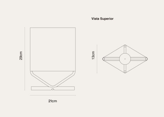 Lámpara de mesa de luz difusa compuesta por una estructura filar niquelada donde tensa una pantalla textil de polyester.